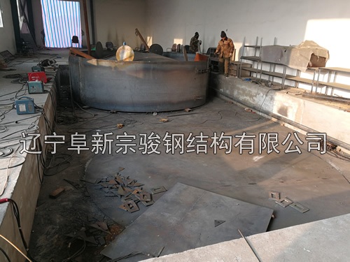 遼寧阜新宗駿鋼結構立式儲水罐正在施工中